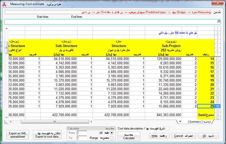 امكان استفاده از فرمول خاص cost براي تعيين بهاي يك كار، يك سازه/زيرسازه و يا يك پروژه/زيرپروژه