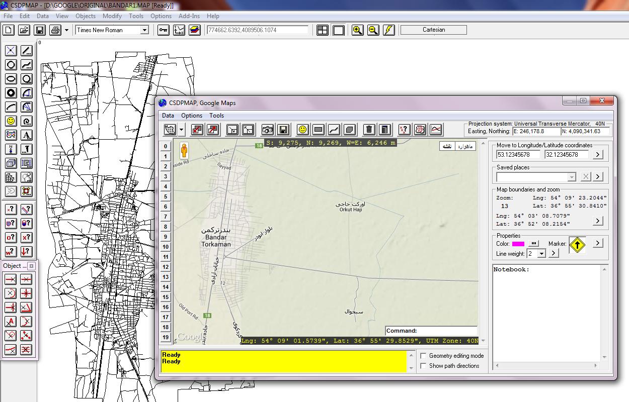 انتقال اجزاء ترسيم شده در پنجره CSDPMAP, Google Maps به بخش اصلي نرم افزار و بالعكس