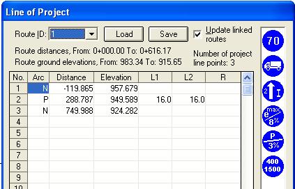 نمايش آيكون هاي فرضيات پايه طراحي در پرسشنامه هاي قوسهاي افقي، خط پروژه، و مقاطع عرضي