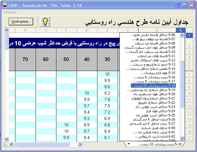 - اضافه شدن جداول آيين نامه ١٩٦ راه روستايي و محاسبات دور بر مبناي اين جداول درصورت
