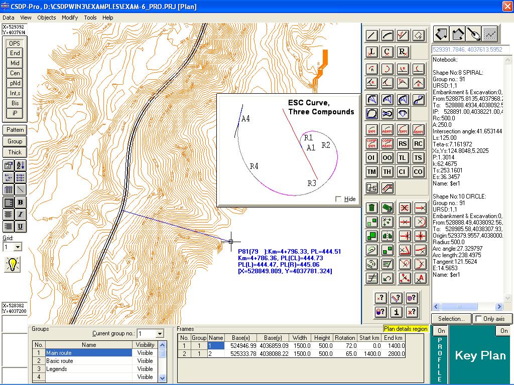 - امکان ترسيم پلان مسير بطور اتوماتيک برمبناي تعيين يک ژيزمان اوليه و مشخصات قوسهاي افقي و